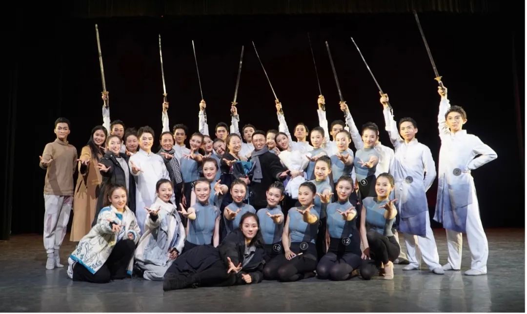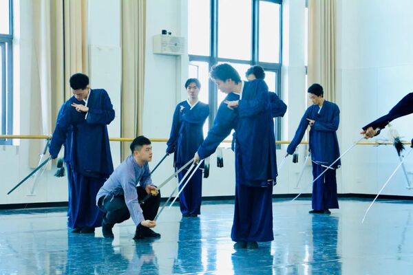 作为中国古典舞教师,袁作朦始终强调中国传统文化的美学浸润和为人民而舞的育人导向,引领学生不断探索中国古典舞的身体美学与传统文化精神的内在关系。读书时,袁作朦师从北京舞蹈学院学术委员会副主任、中国古典舞系张军教授,深耕剑舞,其训练的价值在于“舞剑,实乃舞心、舞精神、舞品格”,从身体训练到心理感知,最终上升到“超脱自然”的艺术审美、“自强不息”的精神表达与人格塑造。他在课堂上强调“起心动念”,从动作分析中引导学生去想象、理解传统艺术的独特审美,以及其蕴含的中华民族特有的哲学观和精神品格。