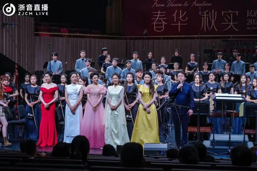 本场音乐会是五大学院2023届结业音乐季的其中一场,既有经久不衰、脍炙人口的经典曲目,又有融合现代创作理念风格的新作,打破了传统与现代的界限,为民族音乐发展提供了丰富的方式与广阔的空间,也为进一步推进中华优秀传统文化的创造性转化和创新型发展提供了崭新的思路。