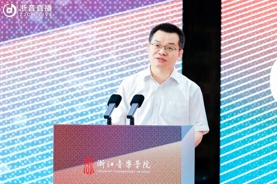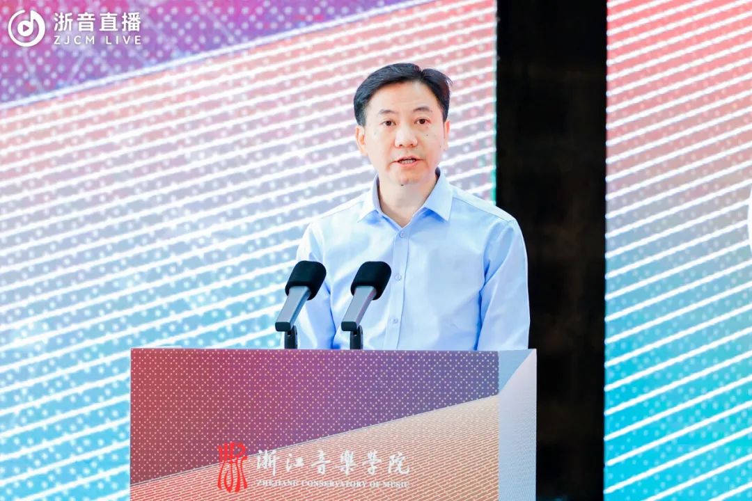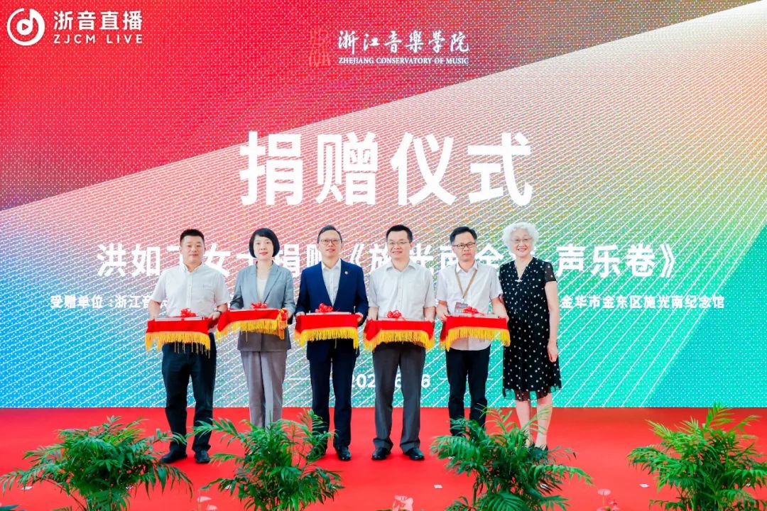 院长王瑞对与会嘉宾的到来表示热烈欢迎。他表示,施光南一生创作和留下了大量歌颂党、歌颂祖国、歌颂人民、歌颂时代的优秀作品,艺术性、时代性、人民性是施光南作品最鲜亮的底色和最鲜明的标识。洪如丁女士和家人将施光南先生的作品手稿、藏书、音像资料以及一批生活和工作用品等珍贵资料文物捐赠给浙音,用于学校的人才培养和教学科研,体现了施光南先生生前一贯的对家乡故土的深情厚谊,更是将传承弘扬施光南先生的艺术理想、艺术精神这一光荣使命交付给了浙音。施光南音乐艺术馆的落成既是浙音对施光南艺术人生的缅怀和纪念,也是对施光南先生艺术成就、艺术精神的追崇和传承,必将成为一代代莘莘学子学习、研究、感悟和继承施光南先生艺术精神和人民情怀的生动课堂。