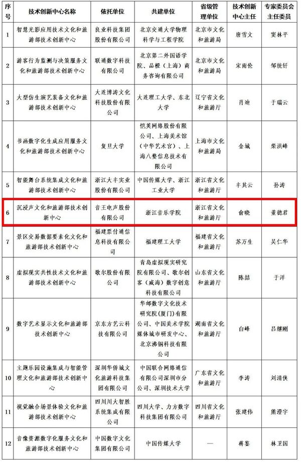 “沉浸声文化和旅游部技术创新中心”入选首批文化和旅游部技术创新中心建设名单
