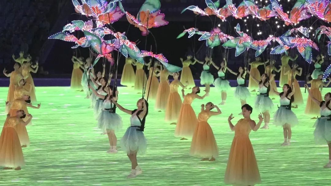 亚运会开幕式倒计时过后,85名浙音舞蹈学院学生化身一群色彩缤纷的“蝴蝶”飞入场内,她们扇动着薄翼,翩然而至,蝴蝶飞舞中,整个儿舞台变成了金色的稻田。今天恰逢秋分,景逢三五秋分夜,光异寻常月满时,带着收获的喜悦,我们一起迎接亚运盛会的到来。