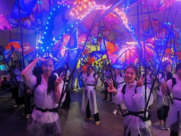180名舞蹈学院学子与众多大学生们一起手持发光金桂走入场内,共同点亮绵延悠长的“金桂之江”。发光的金桂,如同壮阔之江中的一朵“浪花”;“朵朵浪花”汇聚成澎湃钱塘,将属于“之江”的瞩目时刻定格。