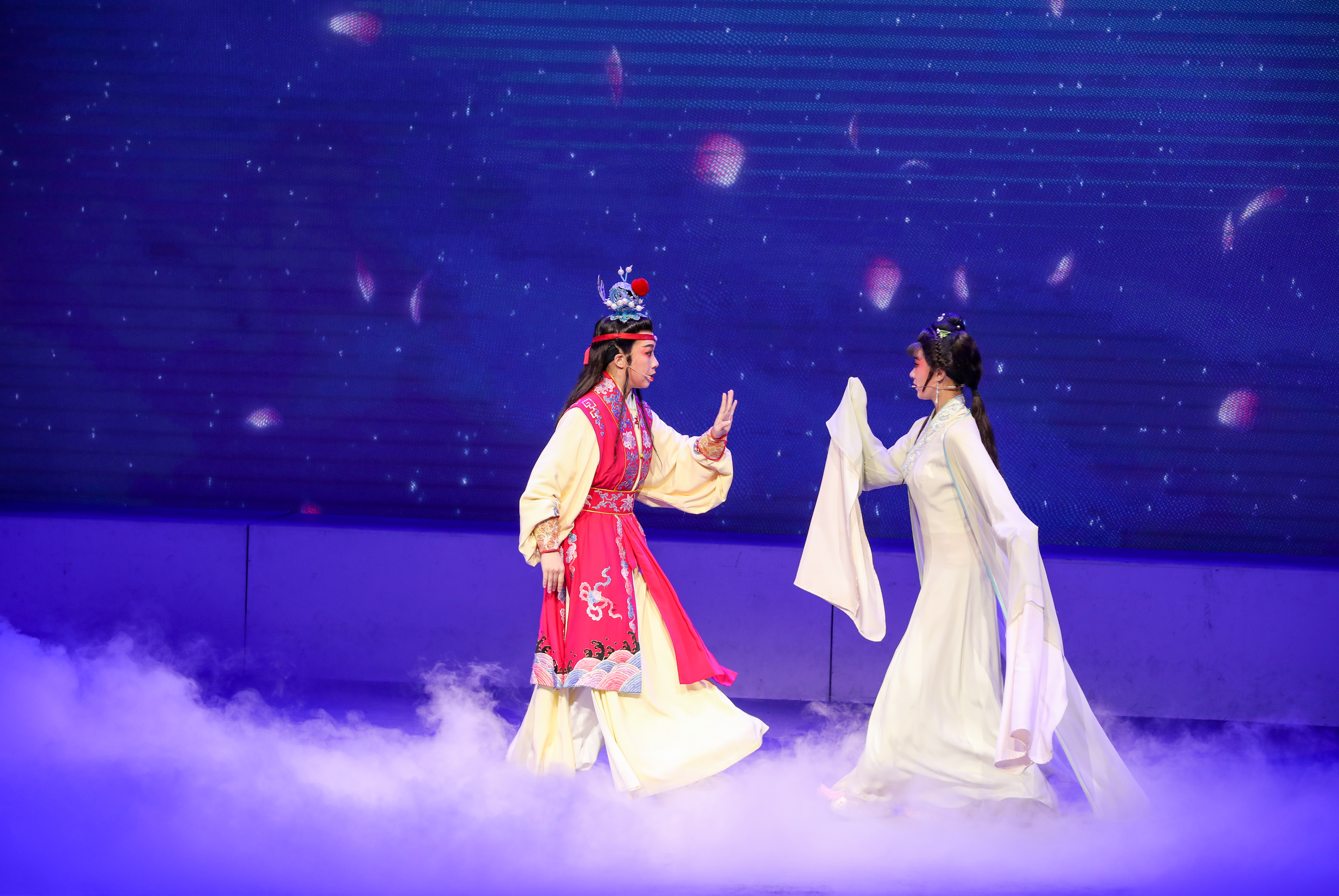 签约仪式后,与会领导和嘉宾共同欣赏了由嵊州越剧艺术学校师生排演的越剧名剧名段和特色节目《魅力越剧》。该剧以嵊州市历史人文资源为依托,以越剧的音乐、表演、舞美等表现形式为载体,以“情”字主线贯穿“风、韵、势”三个篇章,用诗意的创意表达形式展现越剧的昨日风貌、今日盛景及明日希冀,赢得现场观众的阵阵掌声。