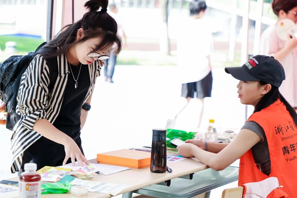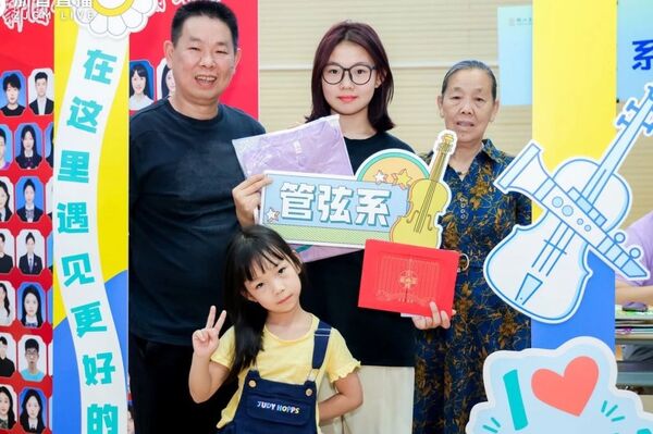各院系用心策划、创意十足,戏剧系为每位新生定制专属“车票”钥匙扣,始发站是自己的高中,终点站是浙音,每张“车票”上都有自己的名字,带给新生满满归属感。声乐歌剧系辅导员发挥自身专业特长,细心观察每位新生的照片,提前半个月就开始为75位新生分别手绘漫画扇子,直到报到当天的凌晨三点才完工。每位收到扇子的学生都怀着惊喜与感动,忍不住细细端详扇子上的自己,感受来自浙音的用心与关爱。