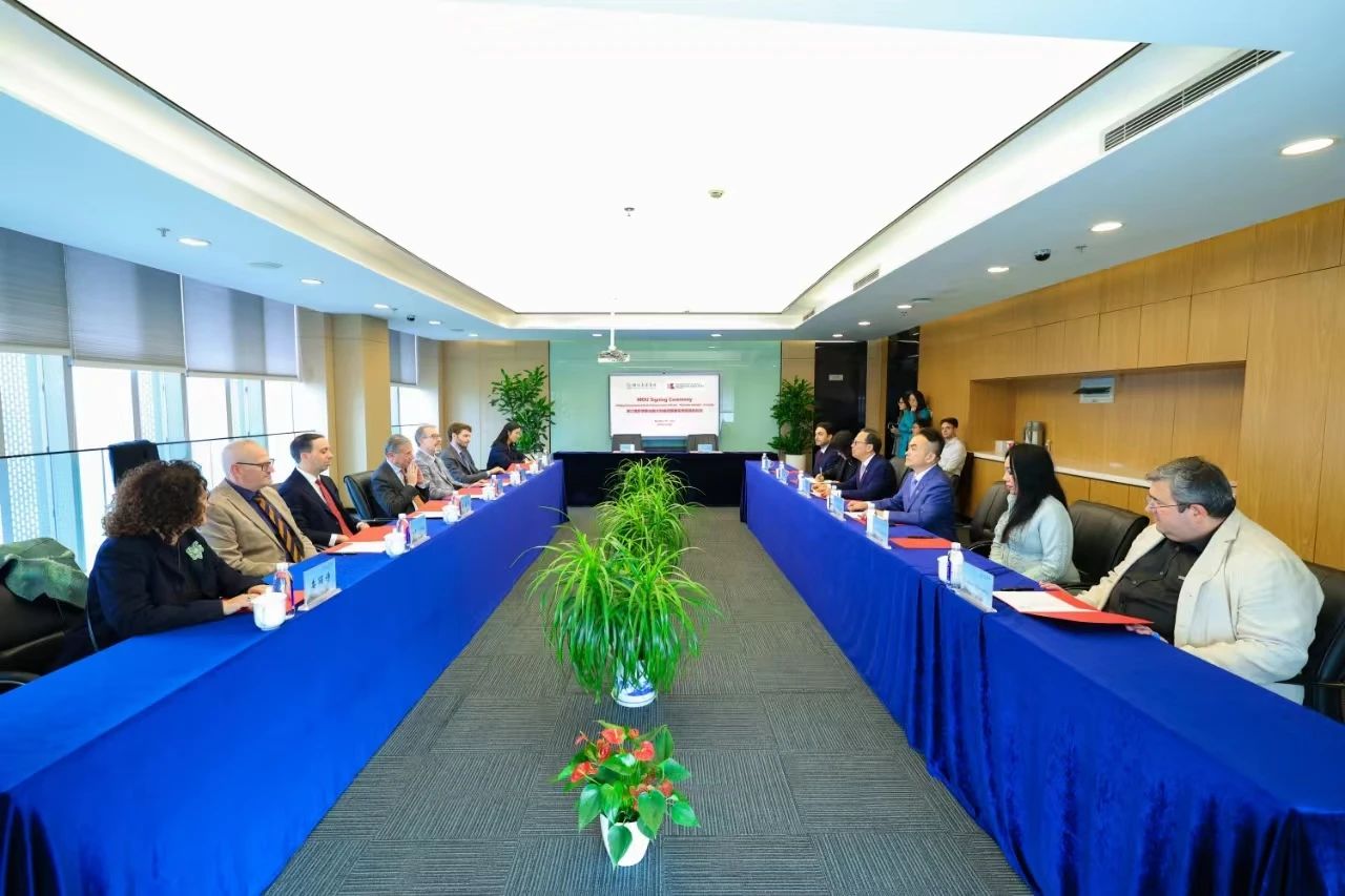 王瑞、法比奥·莫雷蒂共同签署合作备忘录,董德君、程若轲见证签约。