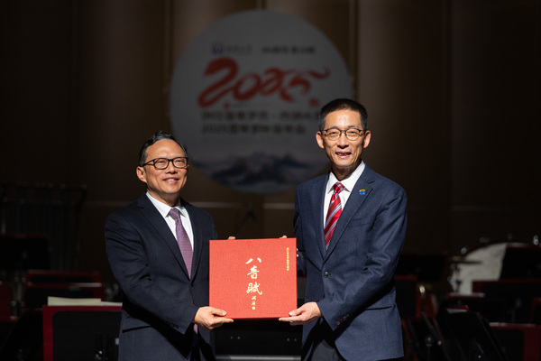 音乐会开始前,施一公和王瑞代表两校进行换约,并互赠礼品。