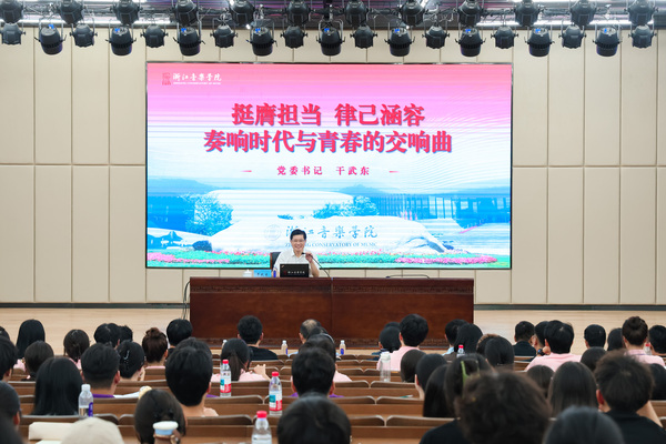 干武东向全体新生提出了四点期望:要坚定理想信念、赓续红色血脉,做胸怀家国的浙音人。青年的命运始终同时代紧密相连。同学们要充分把握好青年时代这一人生价值塑造的黄金期,把握时代脉搏、厚植报国情怀,勇担时代使命,把自己的小我融入祖国的大我、人民的大我之中,与时代同步伐、与人民共命运,才能更好地实现人生价值、升华人生境界。要坚持志存高远、敢于挺膺担当,做勇攀高峰的浙音人。 面对以人工智能为代表的科技革命带来的机遇与挑战,同学们要主动求变,密切关注、实时跟进社会和科技发展前沿,敏于观察、勤于求索、善于思辨,主动学习新技术、新知识,利用数智化工具打破传统音乐、舞蹈学习方式的边界,不断开辟新领域、探索新路径,勇做创新创造的弄潮儿。要坚守高尚品格、甘于脚踏实地,做律己涵容的浙音人。 在疾步前行的当下时代,同学们要守住心性,在大是大非面前要保持清醒头脑,敬畏法律法规、注重品德修养,做到慎独慎微、自律自省,在大学生涯逐步形成清晰的自我认知,脚踏实地,追求更有高度、更有境界、更有品位的人生。要坚信青春无价、提升综合素养,做豁达阳光的浙音人。要珍惜青春,多元发展。要面向社会,“走出网络舒适区”,积极参与实践演出活动,在服务社会中开阔视野、增长才干。要陶冶情操,养成良好的生活习惯,树立积极的生活态度,成为一个身心健康、精神丰富、志趣高雅的人。要学会规划,管理好时间、情绪和人际关系,努力在浙音成长为最好的自己。