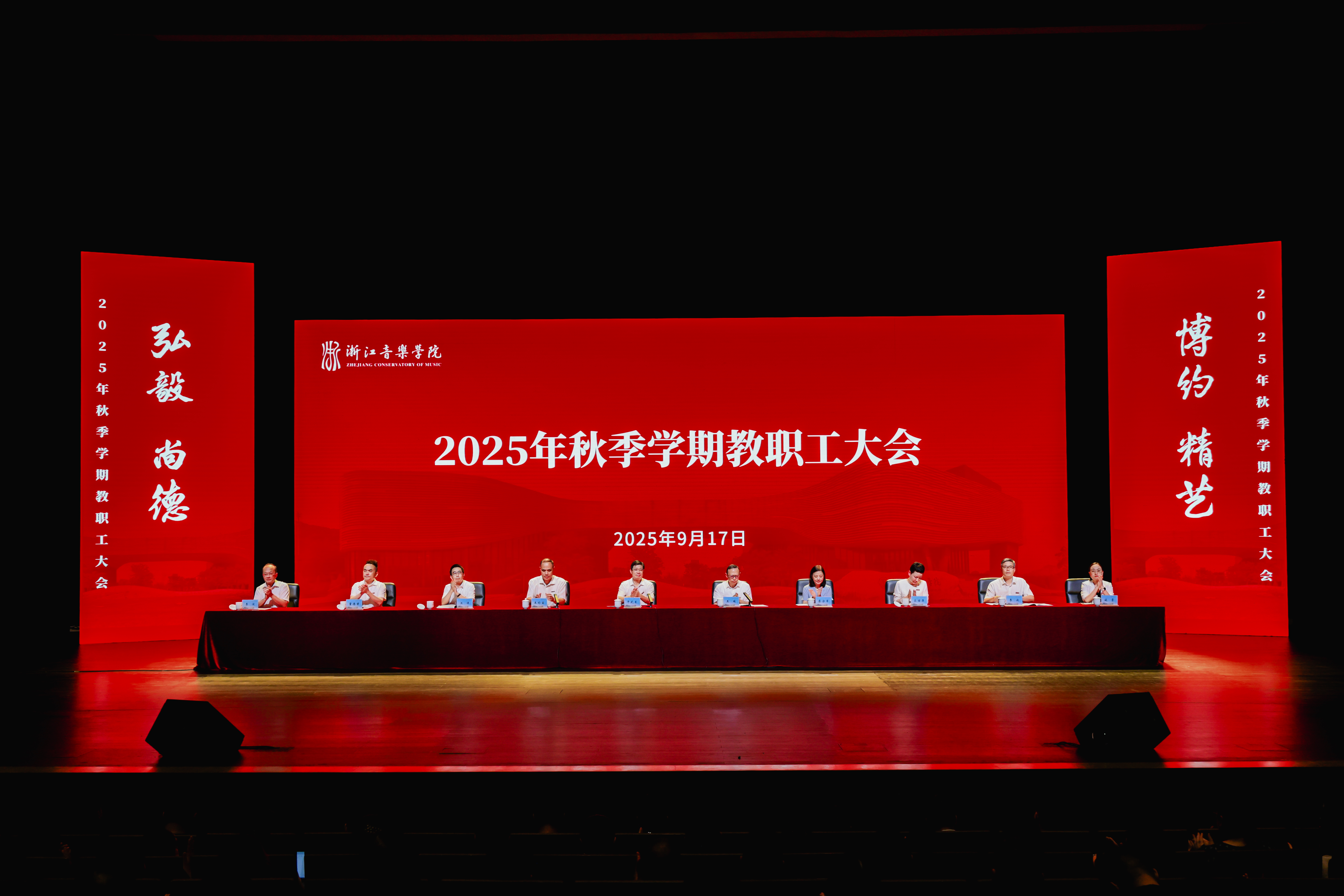会上,干武东围绕“守牢办学底线、勇攀发展高线,实现浙音实现又好又快发展”这一主题发表讲话。他指出,浙音作为浙江省唯一一所专业音乐学院,近年来在教育教学改革、学科建设、人才培养、艺术创演等方面取得显著成效。干武东结合省委十五届七次全会精神和学校发展实际,就下一步工作提出四点要求。一是厘清“底线”与“高线”,在时代坐标中锚定浙音使命担当。要深刻把握“底线”与“高线”的辩证统一,坚守立德树人的初心不能变、育人生态的根基不能松、校园安全的防线不能破的底线,聚焦建设“高水平一流”的目标不能变、艺术赋能文化强省的担当不能弱、培养“德艺双馨”时代新人的标准不能降的高线,以问题为导向,通过完善体制机制、优化资源配置、强化人才引育等举措,系统攻坚,推动学校发展再上新台阶。二是勇攀“高线”,以改革创新激活艺术教育的新动能。要肩负为浙江文艺事业、教育事业乃至整个社会发展培育艺术人才的重要使命,瞄准关键领域、聚焦重点环节,全力打造“四个高地”,即打造“人才引育高地”,以“全球视野”聚才育才;打造“学科建设高地”,构建具有浙音特色的学科生态;打造“艺术创新高地”,创作彰显时代精神的扛鼎之作;打造“人才培养高地”,构建“五育并举”的育人体系,不断筑牢学校发展根基,以实际行动为浙江实现“四个基本建成”贡献力量。三是筑牢“底线”,以“时时放心不下”的责任感,护航学校高质量发展。要时刻秉持“念兹在兹、常抓不懈”的强烈责任感,以高质量党建引领发展,推动党建与教学、科研、创作深度融合;要守住意识形态底线,压实责任、建强队伍,确保“为党育人、为国育才”的初心不动摇;要坚守校园安全红线,开展全方位排查整治,落实全员责任体系;要恪守师德师风第一标准,强化师德建设,严格师德监督,为学校事业高质量发展提供坚实可靠的保障。四是进一步加强自身建设,不断提升能力素质,争做新时代高水平艺术教育工作者。要始终坚持教育家标准,大力弘扬“六干”作风,自觉在“讲政治”上立标杆、在“有情怀”上作示范、在“勇担当”上显作为、在“守清廉”上树形象,以更饱满的热情、更务实的作风、更奋进的姿态投入工作,为推动浙音高质量发展、早日建成“高水平一流”音乐学院贡献力量。