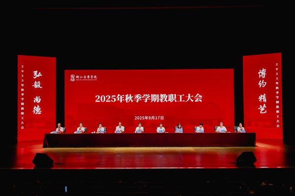 王瑞全面总结“十四五”以来学校发展取得的成绩,深入分析当前面临的新形势新任务,并就科学谋划“十五五”规划提出建设性意见。他指出,“十四五”是浙音实现跨越式发展、奠定格局的关键五年。全校上下紧紧围绕“立德树人”根本任务和“高水平一流音乐学院”建设目标,以“二次创业”的奋斗姿态,持续深化改革创新、推进内涵建设,在学科专业建设、人才培养、艺术创作、社会服务等各个方面实现显著突破。面对新发展阶段的形势与任务,王瑞表示,必须清醒认识当前高等教育和文化艺术领域深刻变革所带来的机遇与挑战,进一步增强忧患意识和战略主动,坚定不移以高质量发展为主线,统筹做好下半年重点工作与“十五五”规划开局谋划。针对下一步工作,他提出三点要求,一是坚持系统规划与学科引领。高质量完成下半年学科建设与教学改革任务,启动新一轮规划编制工作。高起点推进学科专业建设,构建具有浙音特色的音乐学科体系。推进科研、教学与实践深度融合,完善培养机制,全面提升创新能力。二是推动科研创作与社会服务提质增效。重点推进本年度国家艺术基金、社科基金等重大项目的创研工作,充分激活现有人才资源,精准引进高端人才,建立健全科研成果与艺术创作成果的转化机制,主动服务文化浙江建设与国家重大战略需求,显著提升学校在高端成果产出、学术引领与社会服务中的贡献度。三是深化现代大学治理体系改革。全面推动数字化建设在教育教学、艺术创作、学术研究与内部管理中的深度融合与应用,加快构建符合新时代要求的现代大学治理体系,为学校持续发展注入强大动能。希望大家牢固树立以学校发展为核心的大局观,团结协作、勇于担当,以开放、创新、务实的态度共同推动浙音高质量发展。